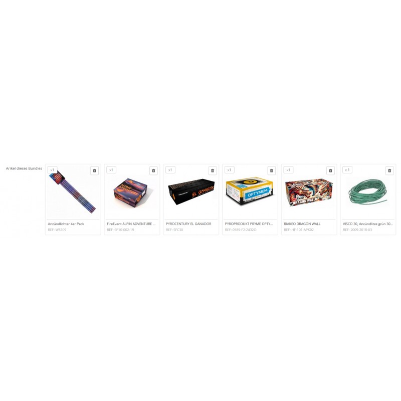 Performance Verbundfeuerwerk mit verschiedene Fächerungen und Schussfolgen beinhaltet I Shape, Z Shape, Fan Shape, W Shape und X Shape. Der Verbund beinhaltet folgende Effekte: I Shape Blaue Peony mit roten BlinksternenZ Shape Silberpalme mit weißen Blinksternen und SchweifaufstiegZ Shape Silberpalme mit roten Blinksternen und SchweifaufstiegW Shape...